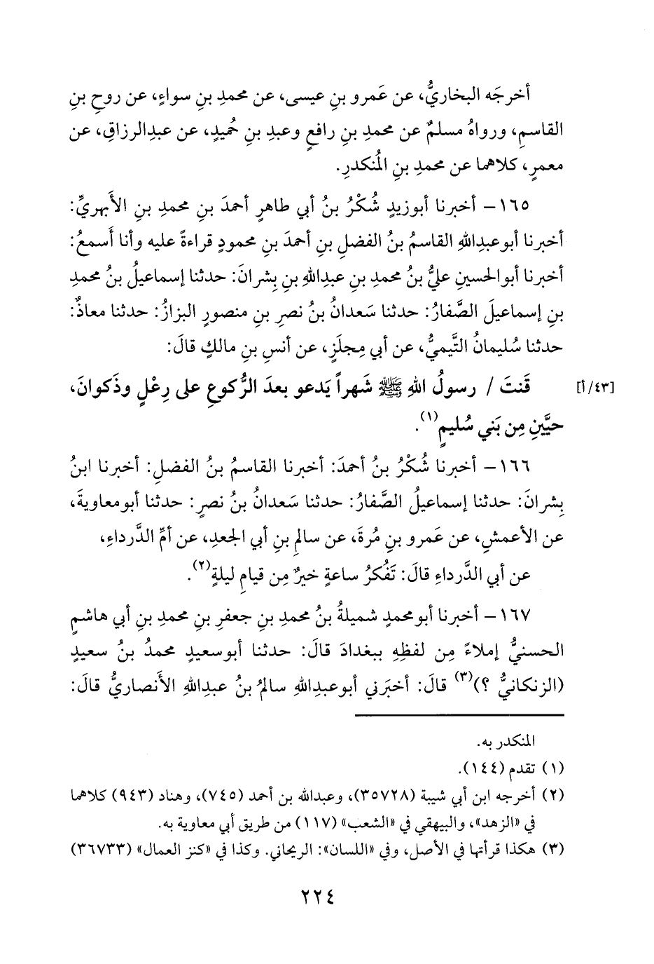 قَنتَ / رسولُ اللهِ صلى الله عليه وسلم شَهراً يَدعو بعدَ الرُّكوعِ على رِعْلٍ وذَكوانَ، حيَّينِ مِن بَني سُليمٍ (¬1).