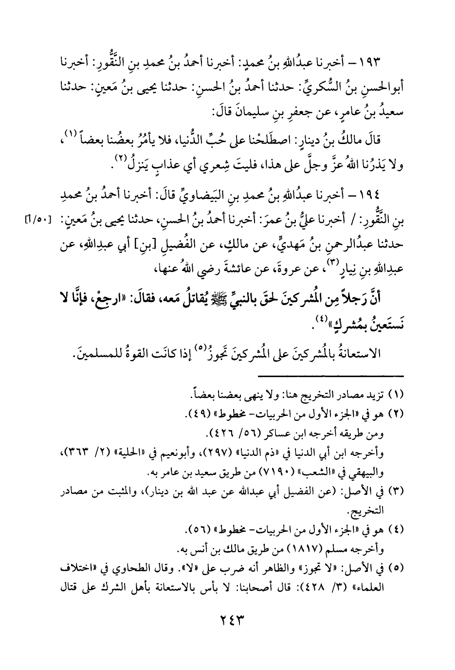 193 - أخبرنا عبدُ اللهِ بنُ محمدٍ: أخبرنا أحمدُ بنُ محمدِ بنِ النَّقُّورِ: أخبرنا أبو الحسنِ بنُ السُّكريِّ: حدثنا أحمدُ بنُ الحسنِ: حدثنا يحيى بنُ مَعينٍ: حدثنا سعيدُ بنُ عامرٍ، عن جعفرِ بنِ سليمانَ قالَ: