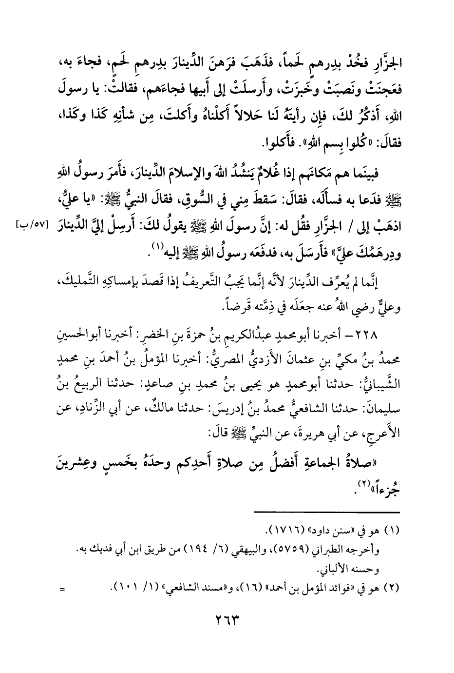 «صلاةُ الجماعةِ أَفضلُ مِن صلاةِ أَحدِكم وحدَهُ بخَمسٍ وعِشرينَ جُزءاً» (¬2).