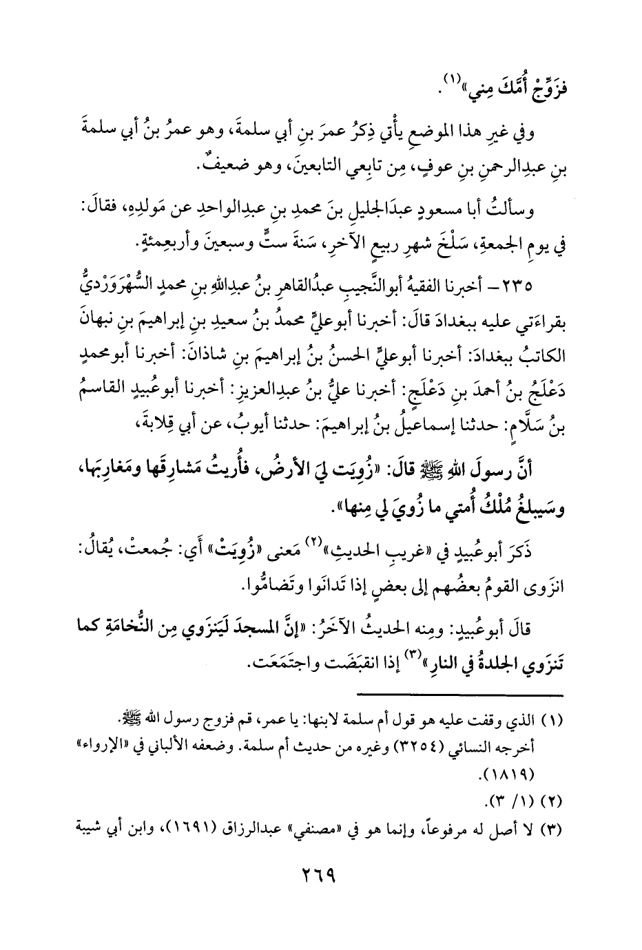 235 - أخبرنا الفقيهُ أبو النَّجيبِ عبدُ القاهرِ بنُ عبدِ اللهِ بنِ محمدٍ السُّهْرَوَرْديُّ بقراءَتي عليه ببغدادَ قالَ: أخبرنا أبو عليٍّ محمدُ بنُ سعيدِ بنِ إبراهيمَ بنِ نبهانَ الكاتبُ ببغدادَ: أخبرنا أبو عليٍّ الحسنُ بنُ إبراهيمَ بنِ شاذانَ: أخبرنا أبو محمدٍ دَعْلَجُ بنُ أحمدَ بنِ دَعْلَجٍ: أخبرنا عليُّ بنُ عبدِ العزيزِ: أخبرنا أبو عُبيدٍ القاسمُ بنُ سَلَّامٍ: حدثنا إسماعيلُ بنُ إبراهيمَ: حدثنا أيوبُ، عن أبي قِلابةَ،