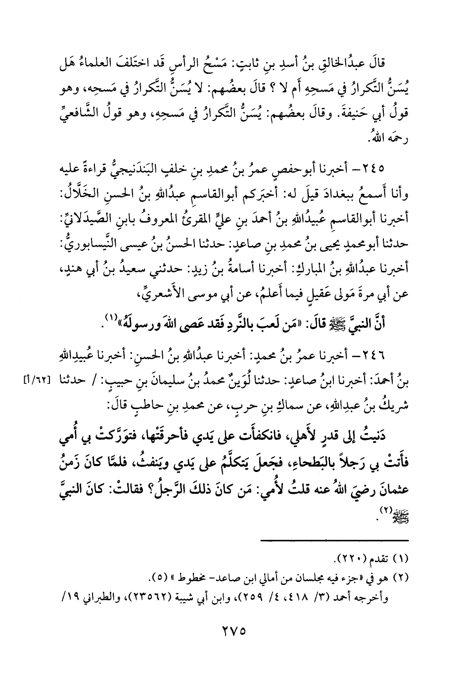 (¬2) هو في «جزء فيه مجلسان من أمالي ابن صاعد- مخطوط» (5).