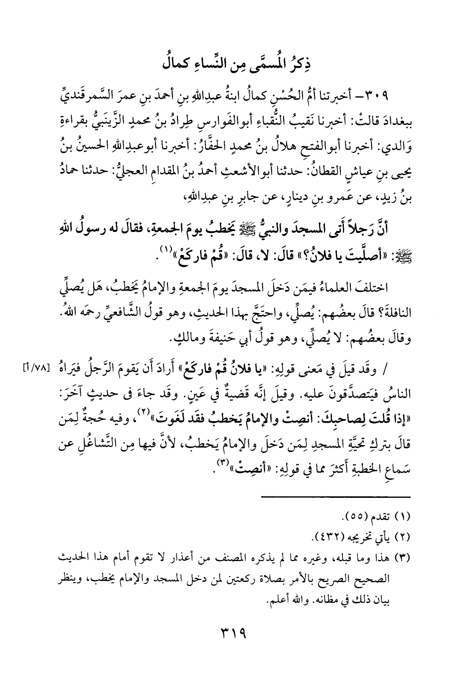 (¬3) هذا وما قبله، وغيره مما لم يذكره المصنف من أعذار لا تقوم أمام هذا الحديث الصحيح الصريح بالأمر بصلاة ركعتين لمن دخل المسجد والإمام يخطب، وينظر بيان ذلك في مظانه. والله أعلم.