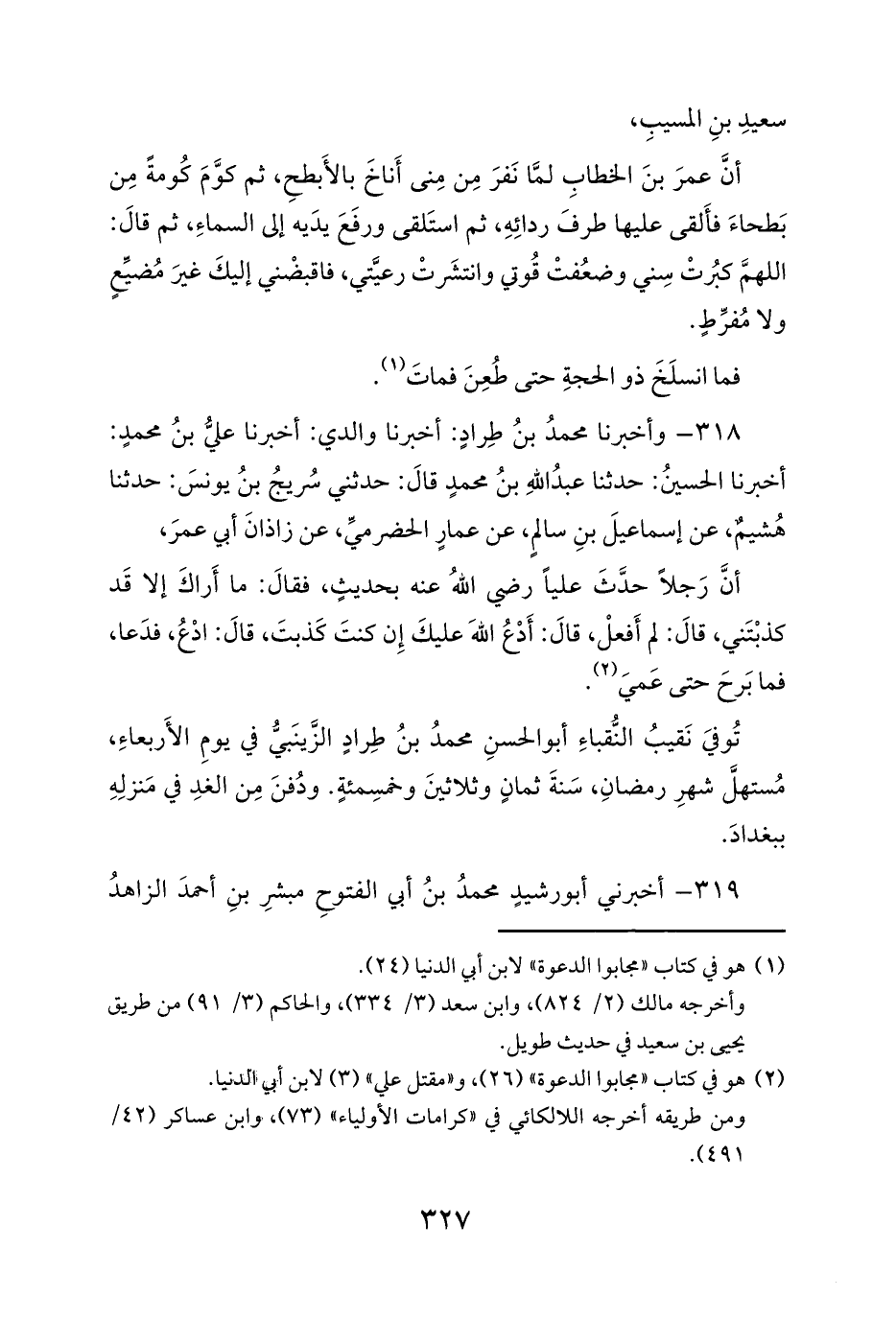 (¬1) هو في كتاب «مجابوا الدعوة» لابن أبي الدنيا (24).