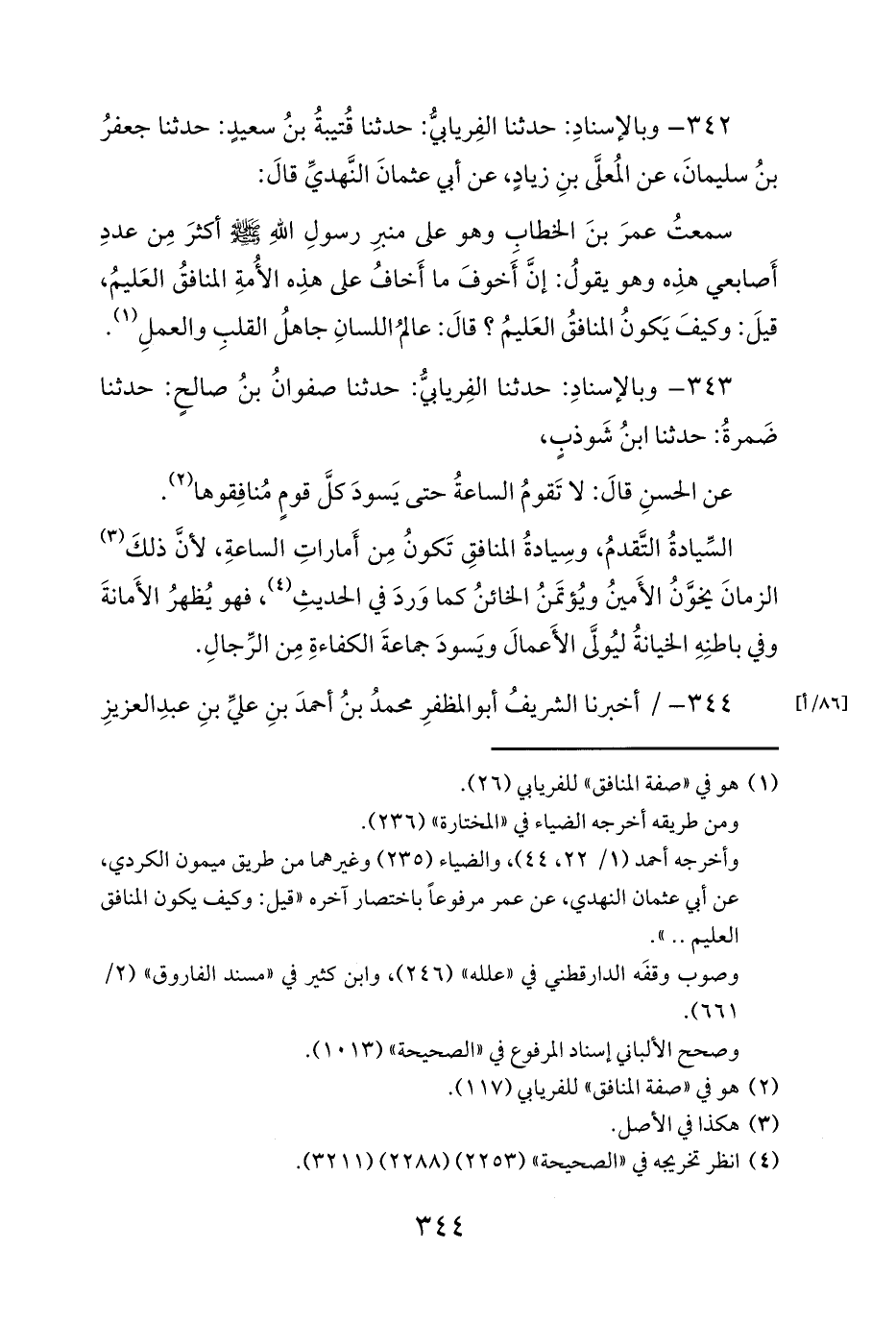 (¬1) هو في «صفة المنافق» للفريابي (26).