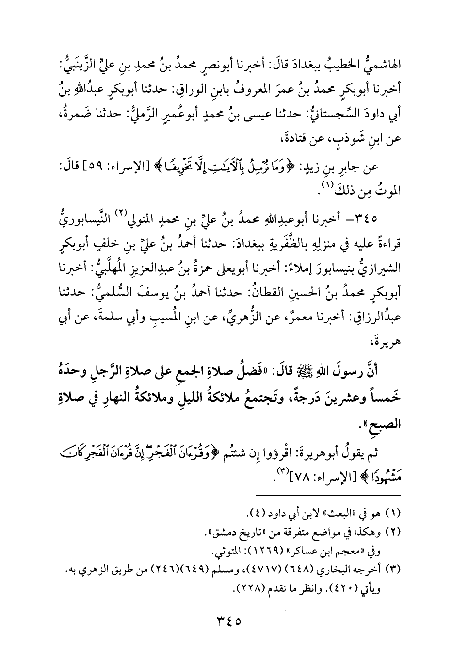 ثم يقولُ أبو هريرةَ: اقْرؤوا إِن شئتُم {وَقُرْآنَ الْفَجْرِ إِنَّ قُرْآنَ الْفَجْرِ كَانَ مَشْهُودًا} [الإسراء: 78] (¬3).