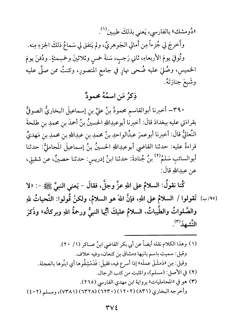 (¬3) هو في «المحامليات» برواية ابن مهدي الفارسي (265).