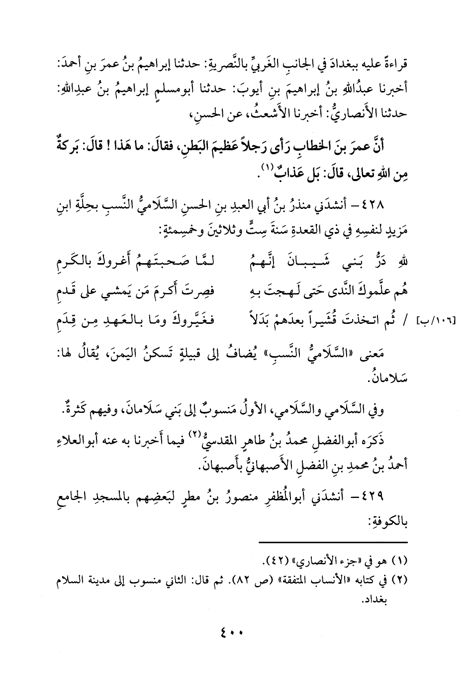 (¬2) في كتابه «الأنساب المتفقة» (ص 82). ثم قال: الثاني منسوب إلى مدينة السلام بغداد.
