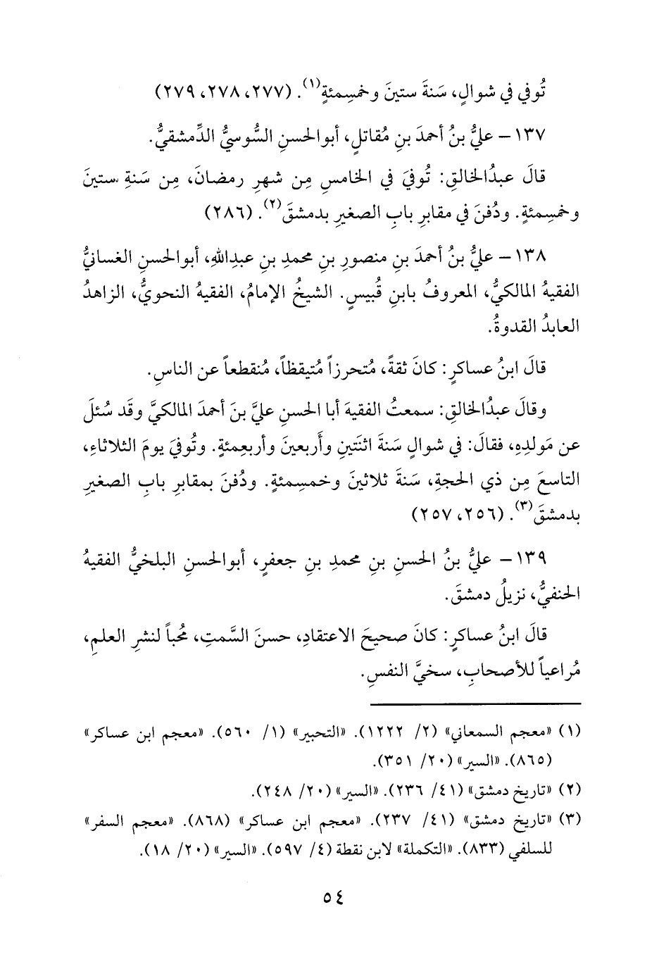 137 - عليُّ بنُ أحمدَ بنِ مُقاتلٍ، أبو الحسنِ السُّوسيُّ الدِّمشقيُّ.