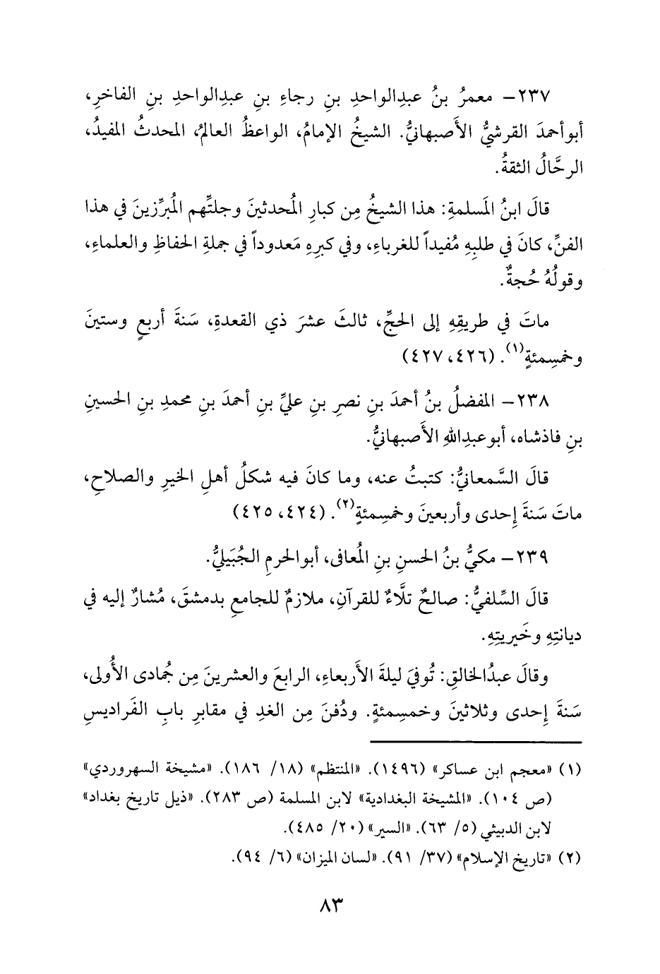 238 - المفضلُ بنُ أحمدَ بنِ نصرِ بنِ عليِّ بنِ أحمدَ بنِ محمدِ بنِ الحسينِ بنِ فاذشاه، أبو عبدِ اللهِ الأَصبهانيُّ.