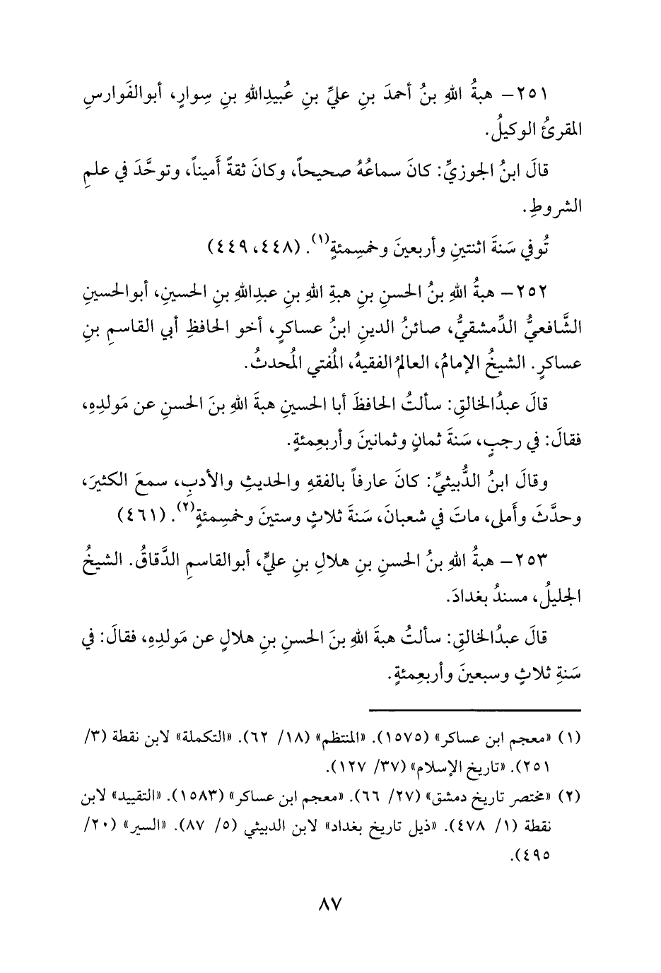 (¬1) «معجم ابن عساكر» (1575). «المنتظم» (18/ 62). «التكملة» لابن نقطة (3/ 251). «تاريخ الإسلام» (37/ 127).
