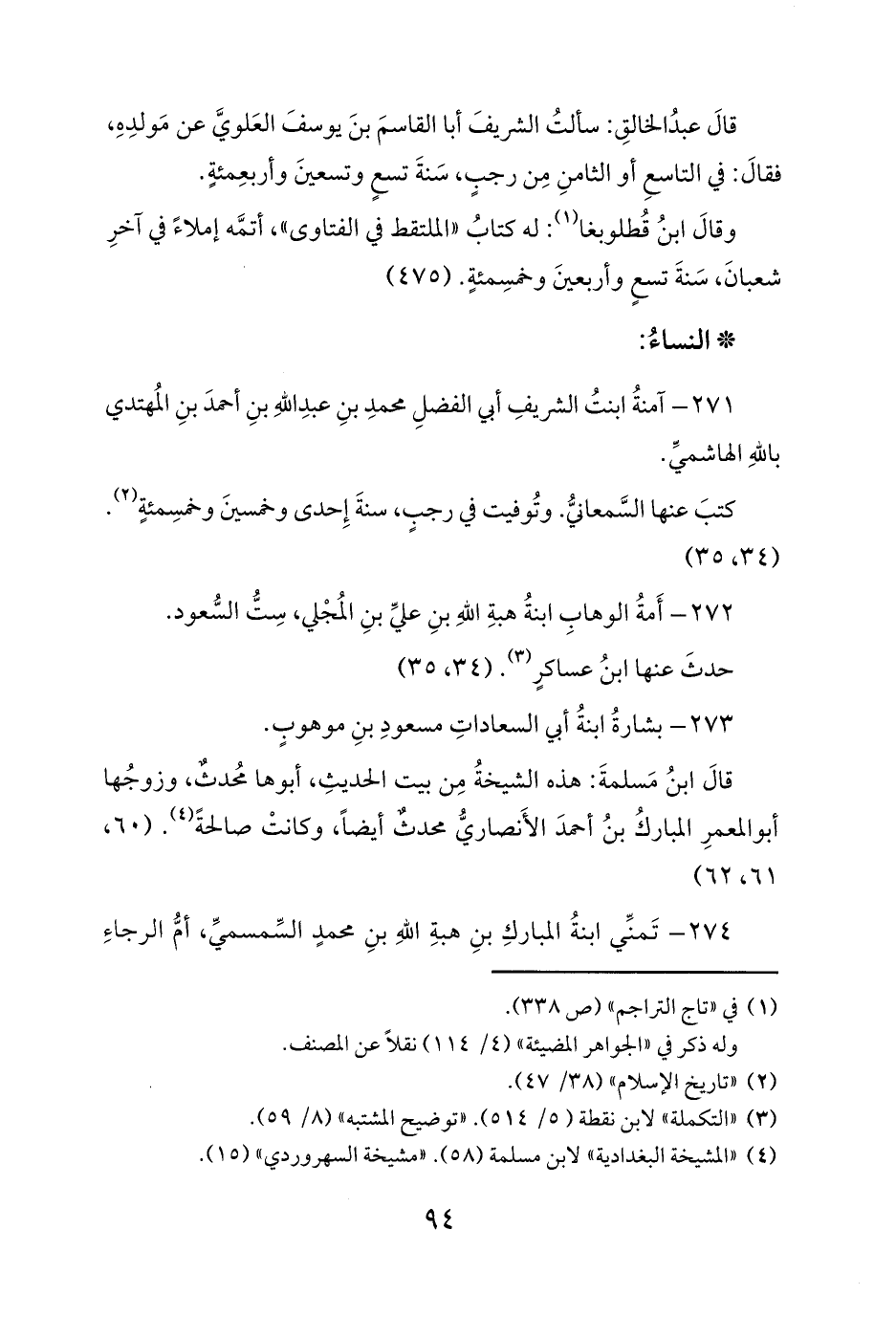 273 - بشارةُ ابنةُ أبي السعاداتِ مسعودِ بنِ موهوبٍ.