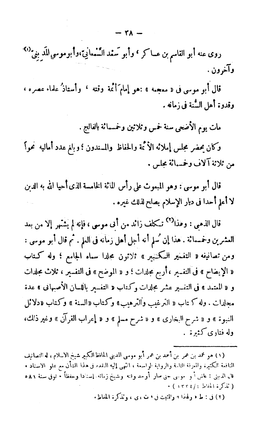 قال الذهبي: وهذا تكلف زائد من أبي موسى، فإنه لم يشتهر إلا من بعد العشرين وخمسمائة.