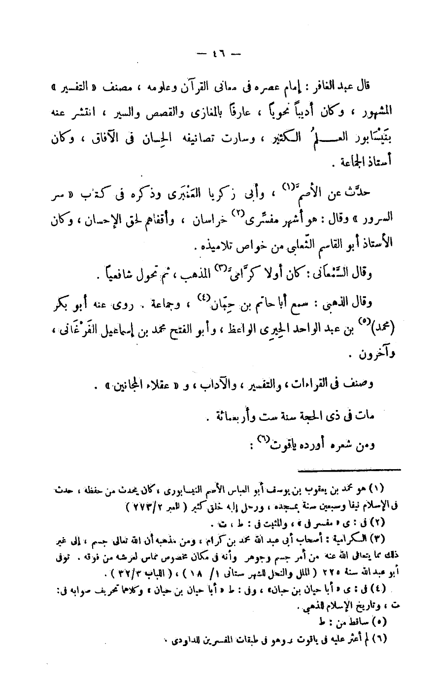 قال عبد الغفار: إمام عصره في معاني القرآن وعلومه، مصنف التفسير المشهور، وكان أديباً نحوياً، عارفاً، بالمغازي والقصص والسير، انتشر عنه بنيسابور العلم الكثير، وسارت تصانيفه الحسان في الآفاق، وكان أستاذ الجماعة.