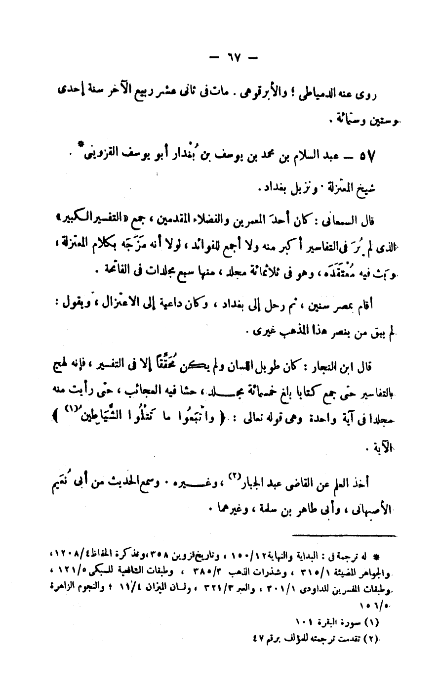 قال ابن النجار: كان طويل اللسان ولم يكن محققا إلا في التفسير، فإنه لهج بالتفاسير حتى جمع كتابا بلغ خمسمائة مجلد،