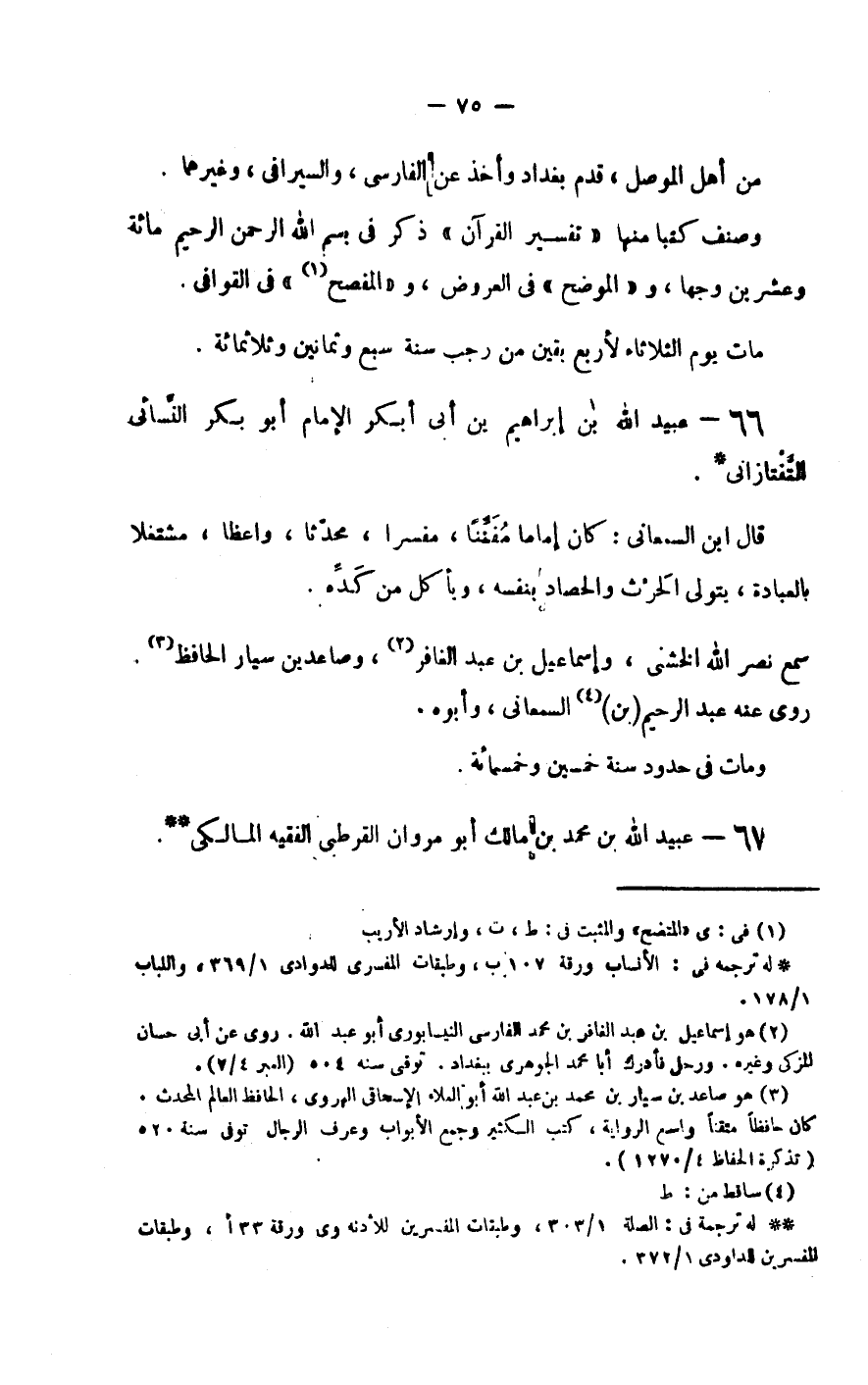 وصنف كتبا منها تفسير القرآن ذكر في بسم الله الرحمن الرحيم مائة وعشرين وجها، والموضح في العروض، والمفصح في القوافي.