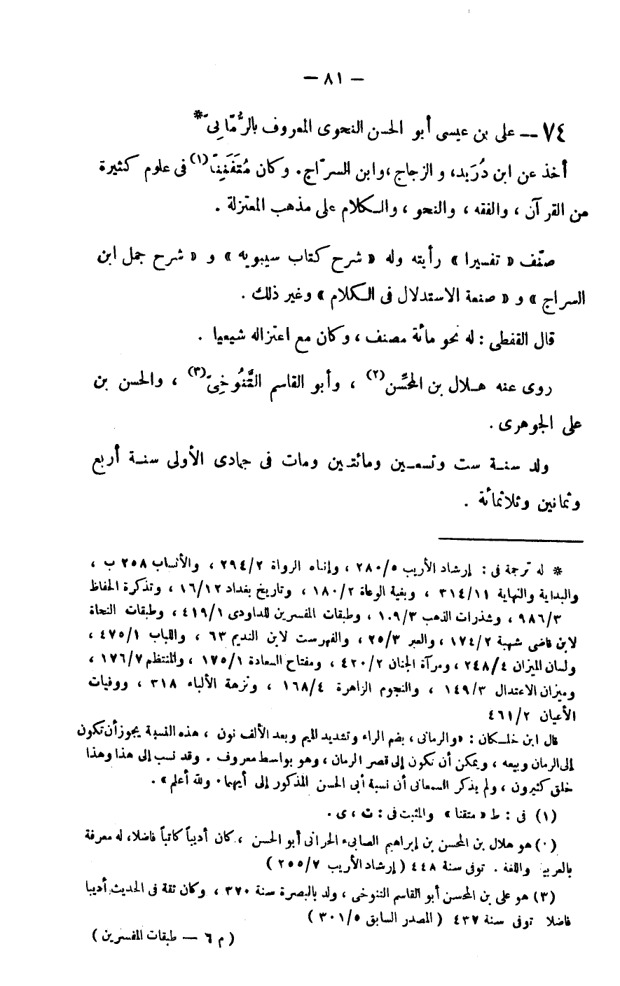 علي بن عيسى أبو الحسن النحوي المعروف بالرماني.