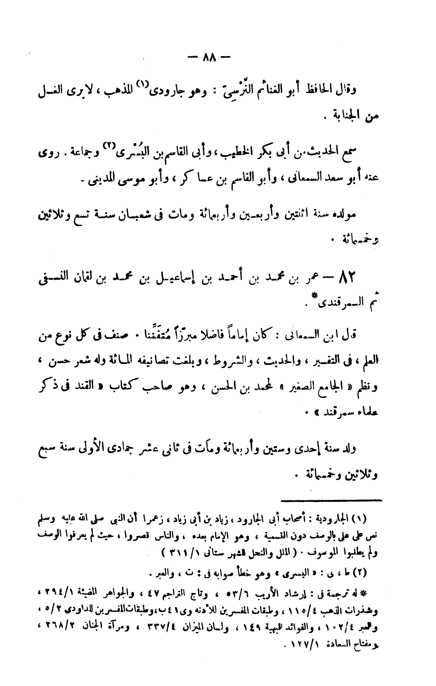 وقال الحافظ أبو الغنائم النرسي: وهو جارودي المذهب، لا يرى الغسل من الجنابة.
