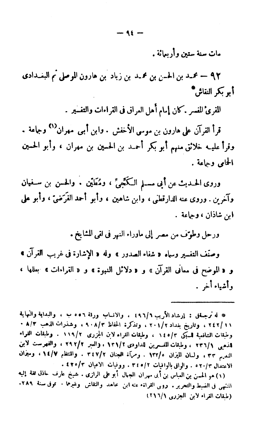 محمد بن الحسن بن محمد بن زياد بن هارون الموصلي ثم البغدادي أبو بكر النقاش.