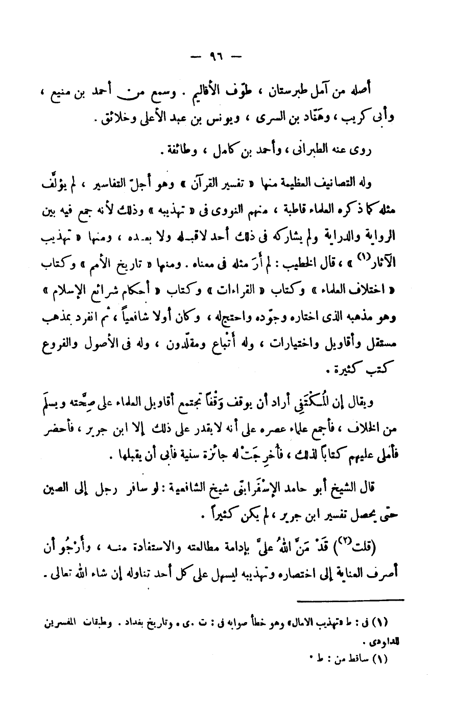 قال الشيخ أبو حامد الإسفرايني شيخ الشافعية: لو سافر رجل إلى الصين حتى يحصل تفسير ابن جرير، لم يكن كثيراً