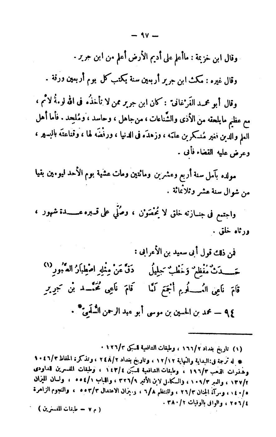 قام ناعي العلوم أجمع لما ... قام ناعي محمد بن جرير