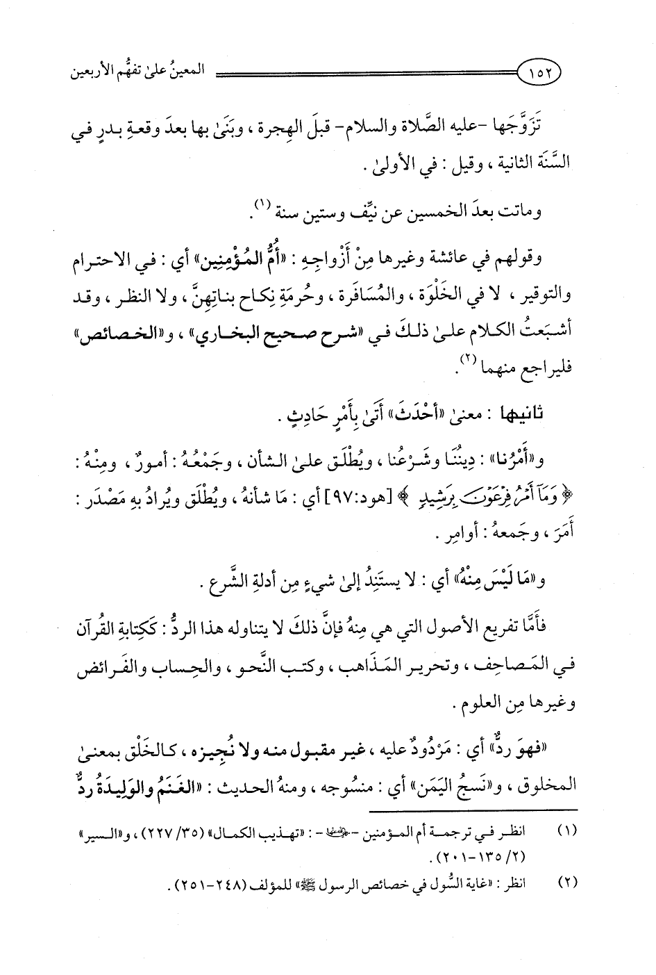 وقولهم في عائشة وغيرها مِنْ أَزْواجِهِ: "أُمُّ المُؤْمنِين" أي: في الاحترام والتوقير، لا في الخَلْوَة، والمُسَافَرة، وحُرمَةِ نِكاح بناتِهِنَّ، ولا النظر، وقد أشبَعتُ الكلام علي ذلكَ في "شرح صحيح البخاري"، و"الخصائص" فليراجع منهما (¬2).