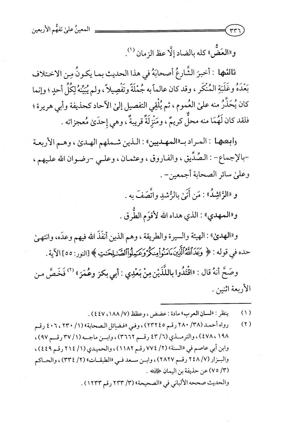 رابعها: المراد بـ "المهديين": الذين شملهم الهدى، وهم الأربعة -بالإجماع-: الصِّدِّيق، والفاروق، وعثمان، وعلي -رضوان الله عليهم، وعلى سائر الصحابة أجمعين-.
