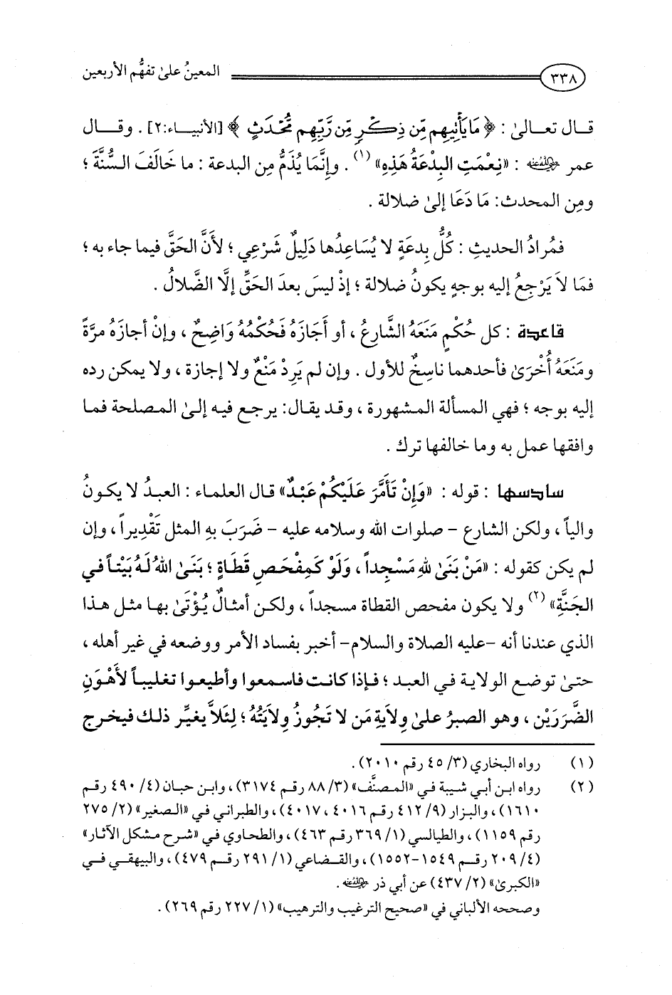 قال تعالى: {مَا يَأْتِيهِمْ مِنْ ذِكْرٍ مِنْ رَبِّهِمْ مُحْدَثٍ} [الأنبياء: 2] وقال عمر - رضي الله عنه -: "نِعْمَتِ البِدْعَةُ هَذِهِ" (¬1). وإِنَّمَا يُذَمُّ مِن البدعة: ما خَالَفَ السُّنَّةَ؛ ومِن المحدث: مَا دَعَا إلى ضلالة.