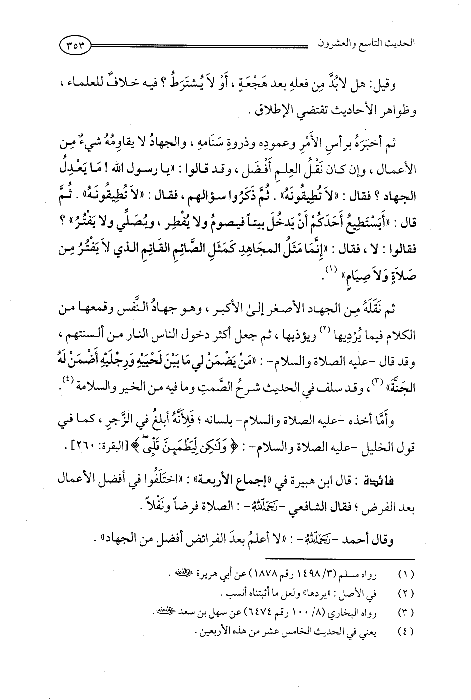 وقال أحمد -رحمه الله-: "لا أعلمُ بعدَ الفرائض أفضل من الجهاد".