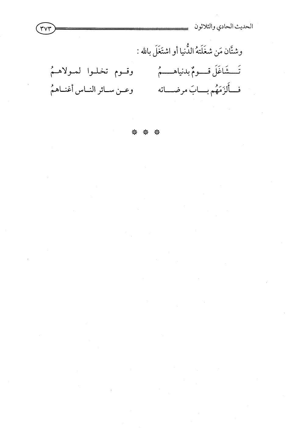 تَشَاغَلَ قومٌ بدنياهمُ ... وقوم تخلوا لمولاهمُ