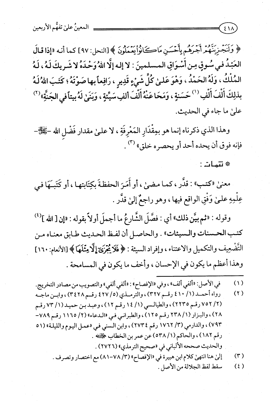 {وَلَنَجْزِيَنَّهُمْ أَجْرَهُمْ بِأَحْسَنِ مَا كَانُوا يَعْمَلُونَ} [النحل: 97] كما أنه "إذا قالَ العَبْدُ في سُوقٍ مِن أَسْوَاقِ المسلمينَ: لا إله إلَّا اللهُ وَحدهُ لا شَريكَ لَهُ، لَهُ المُلْكُ، وَلَهُ الحمدُ، وَهْوَ عَلى كُلِّ شَيْءٍ قَدِيرٍ، رَافِعًا بها صَوْتَهُ؛ كَتَبَ اللهُ لَهُ بذلِكَ أَلْفَ أَلْفِ (¬1) حَسَنةٍ، وَمَحَا عَنْهُ أَلْفَ ألفِ سَيِّئةٍ، وَبَنَى لَهُ بيتًا في الجَنَّةِ" (¬2) على ما جاء في الحديث.
