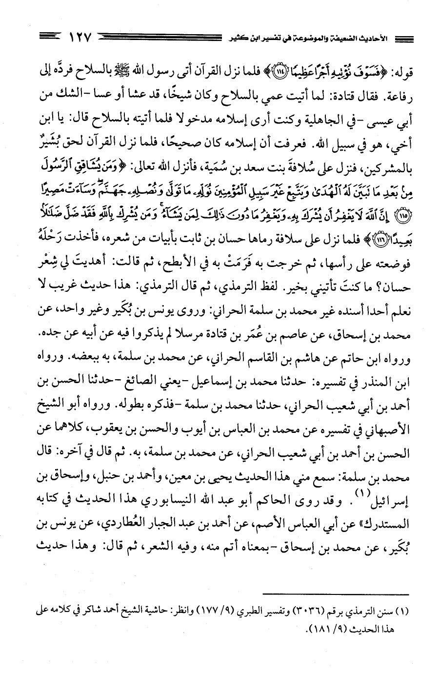 (¬1) سنن الترمذي برقم (3036) وتفسير الطبري (9/ 177) وانظر: حاشية الشيخ أحمد شاكر في كلامه على هذا الحديث (9/ 181).