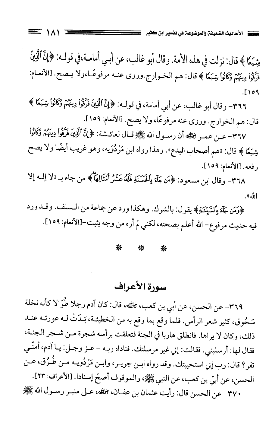 كتاب الأحاديث الضعيفة والموضوعة التي حكم عليها الحافظ ابن كثير في تفسيره