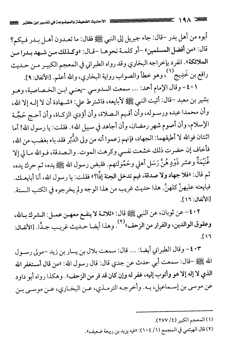 كتاب الأحاديث الضعيفة والموضوعة التي حكم عليها الحافظ ابن كثير في تفسيره