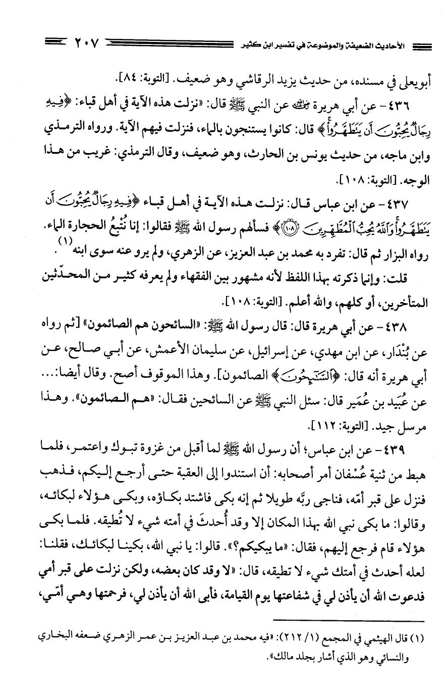 كتاب الأحاديث الضعيفة والموضوعة التي حكم عليها الحافظ ابن كثير في تفسيره