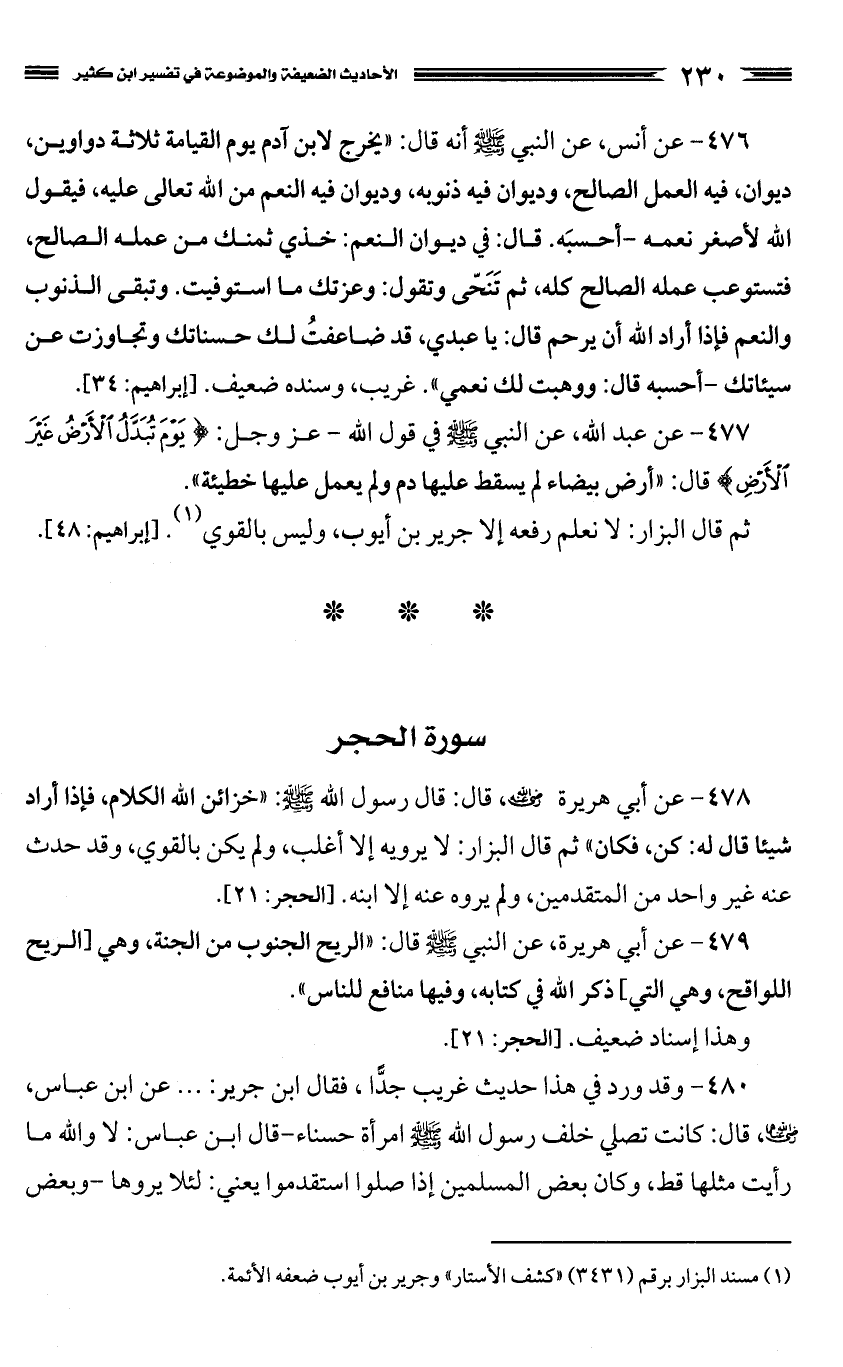 كتاب الأحاديث الضعيفة والموضوعة التي حكم عليها الحافظ ابن كثير في تفسيره