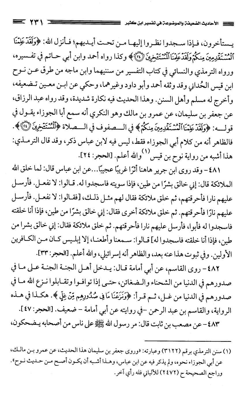 كتاب الأحاديث الضعيفة والموضوعة التي حكم عليها الحافظ ابن كثير في تفسيره