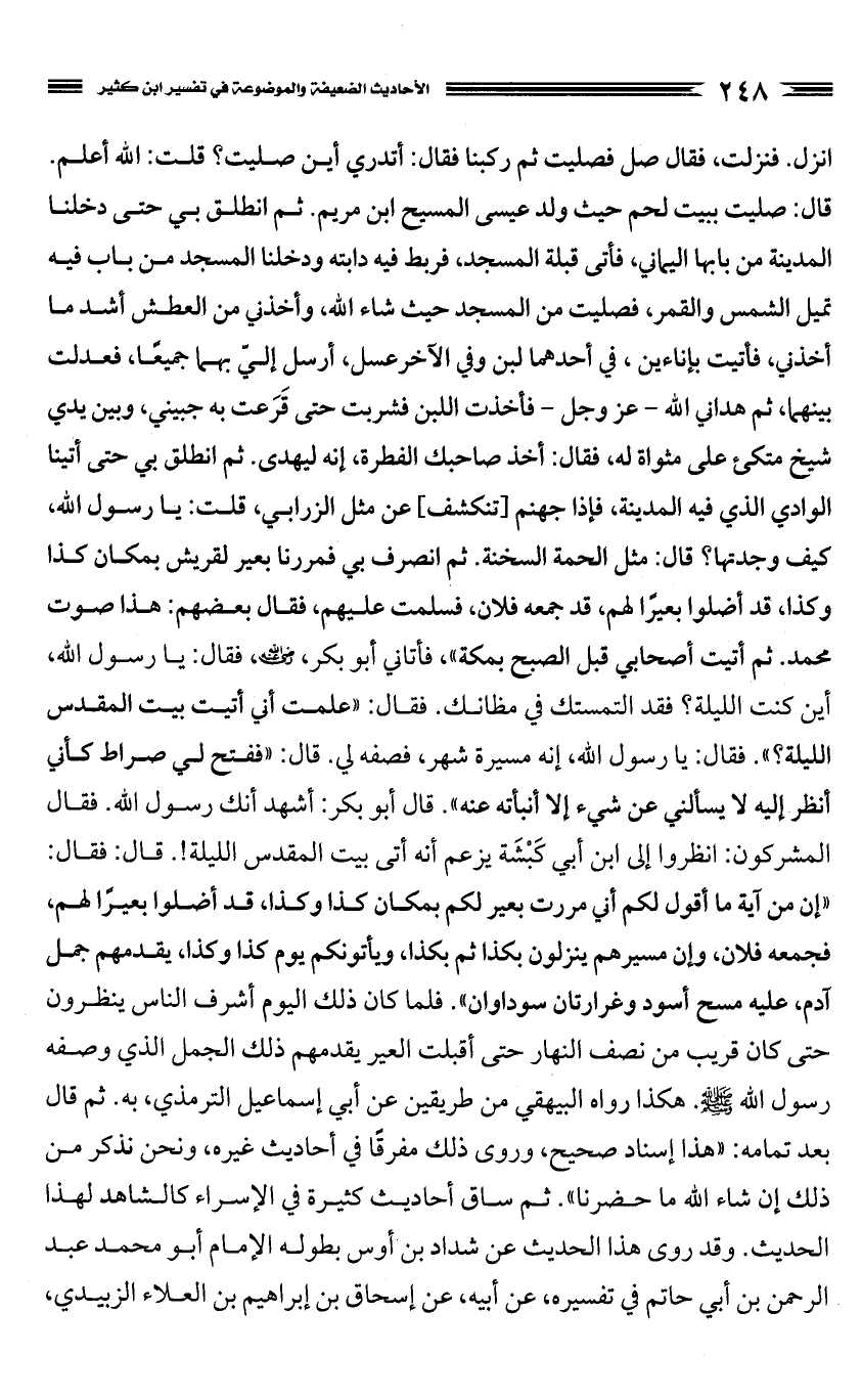 هكذا رواه البيهقي من طريقين عن أبي إسماعيل الترمذي، به. ثم قال بعد تمامه: "هذا إسناد صحيح، وروى ذلك مفرقًا في أحاديث غيره، ونحن نذكر من ذلك إن شاء الله ما حضرنا". ثم ساق أحاديث كثيرة في الإسراء كالشاهد لهذا الحديث. وقد روى هذا الحديث عن شداد بن أوس بطوله الإمام أبو محمد عبد الرحمن بن أبي حاتم في تفسيره، عن أبيه، عن إسحاق بن إبراهيم بن العلاء الزبيدي،