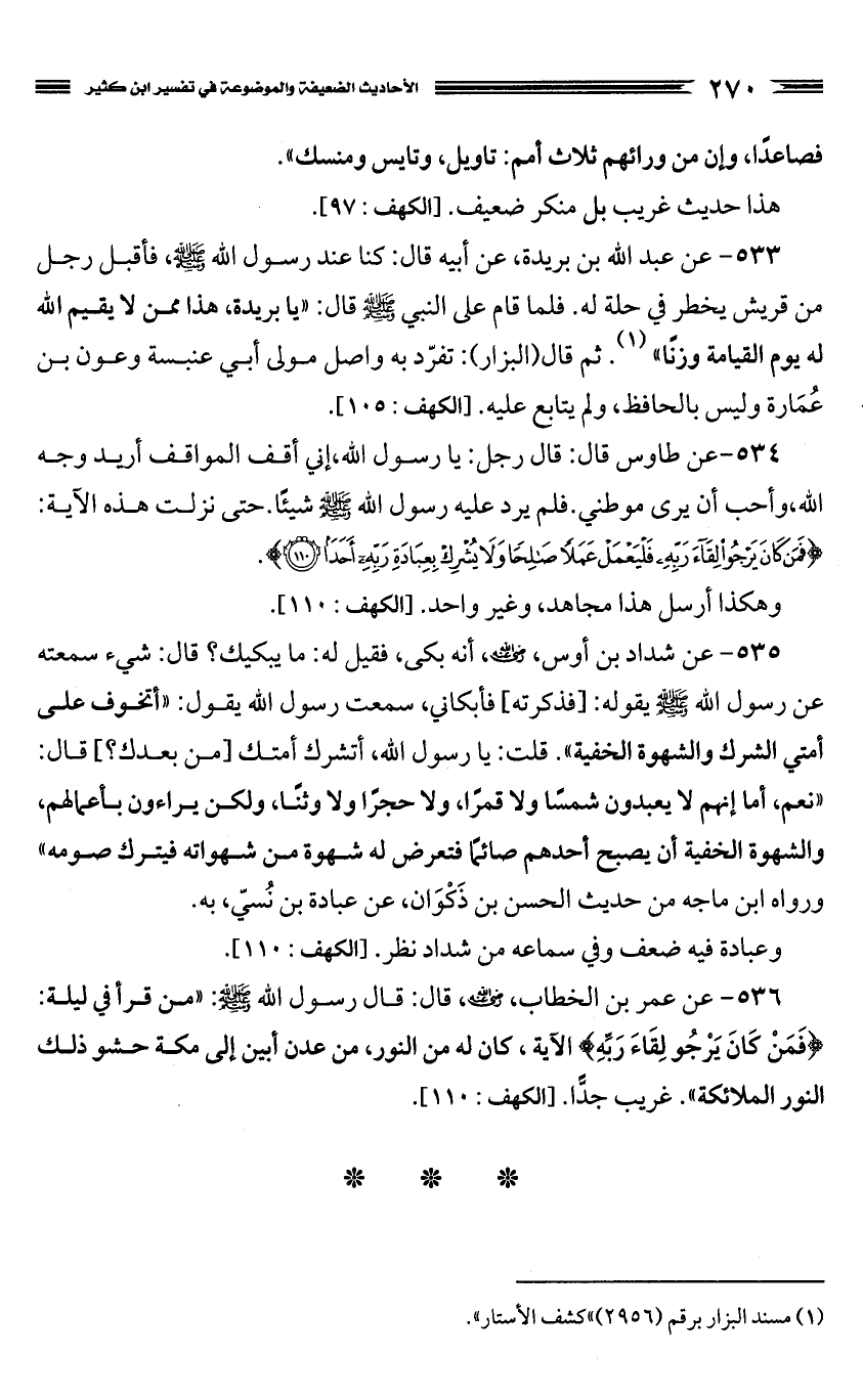كتاب الأحاديث الضعيفة والموضوعة التي حكم عليها الحافظ ابن كثير في تفسيره