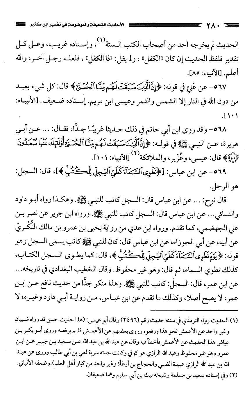 كتاب الأحاديث الضعيفة والموضوعة التي حكم عليها الحافظ ابن كثير في تفسيره