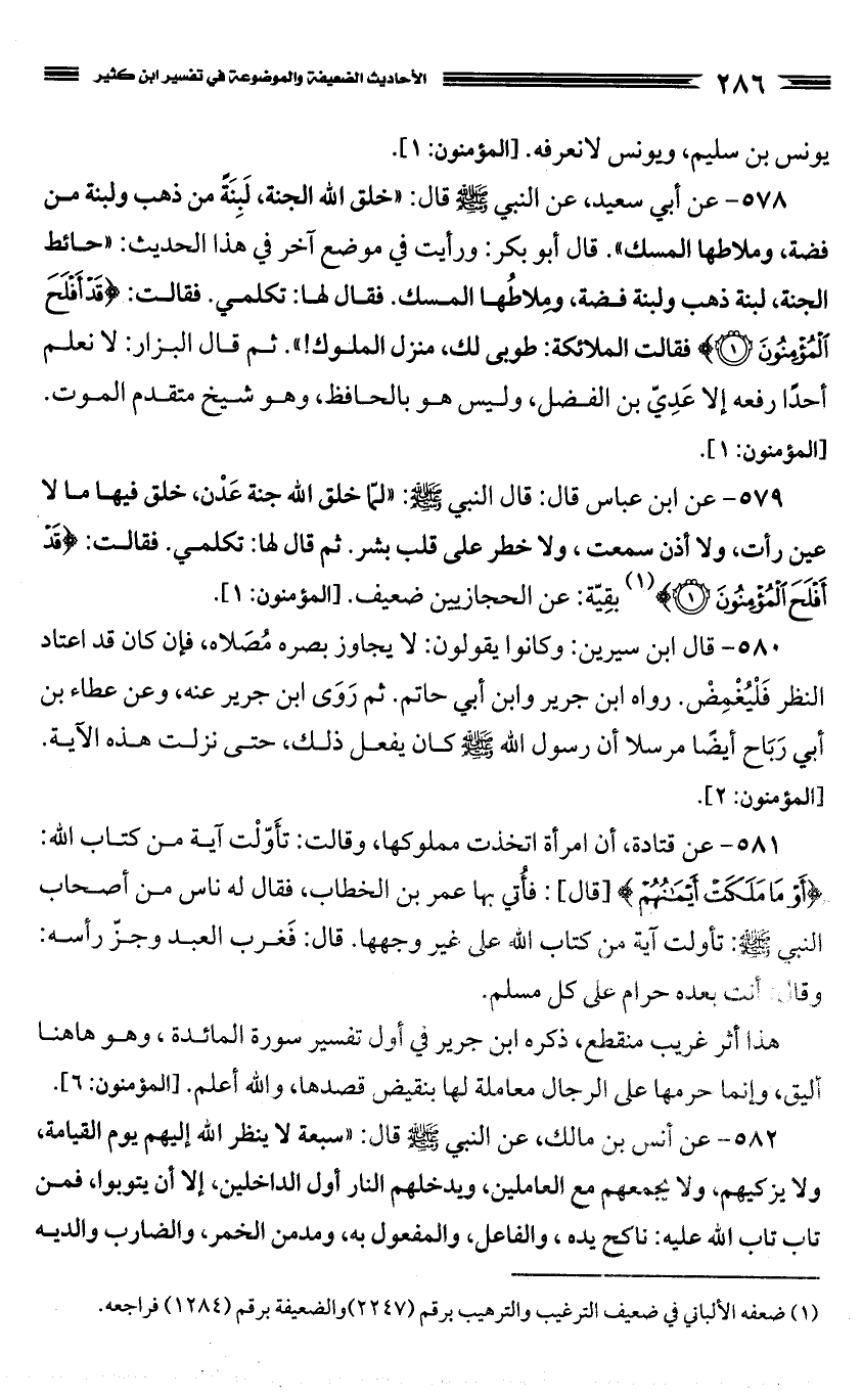 كتاب الأحاديث الضعيفة والموضوعة التي حكم عليها الحافظ ابن كثير في تفسيره