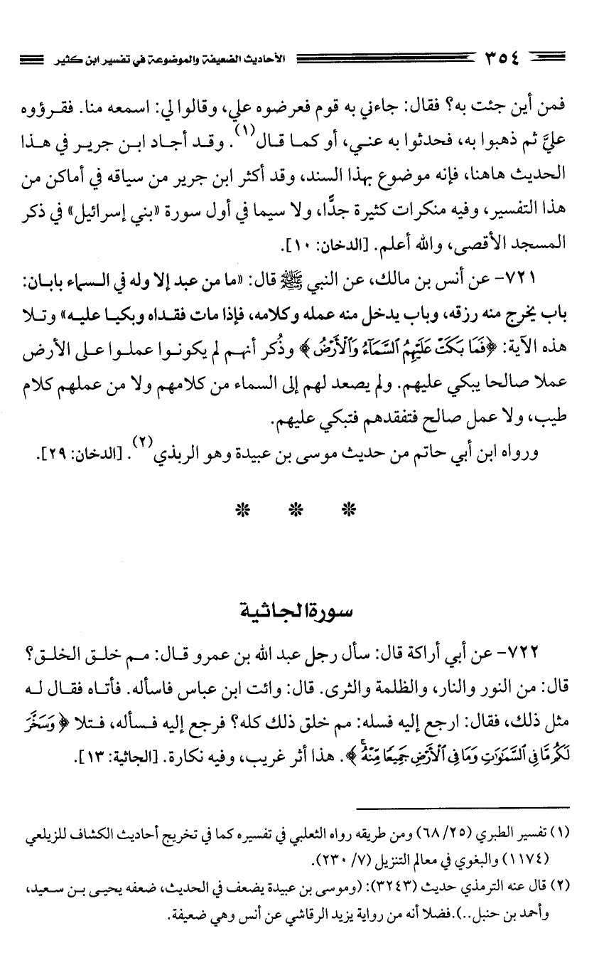 كتاب الأحاديث الضعيفة والموضوعة التي حكم عليها الحافظ ابن كثير في تفسيره