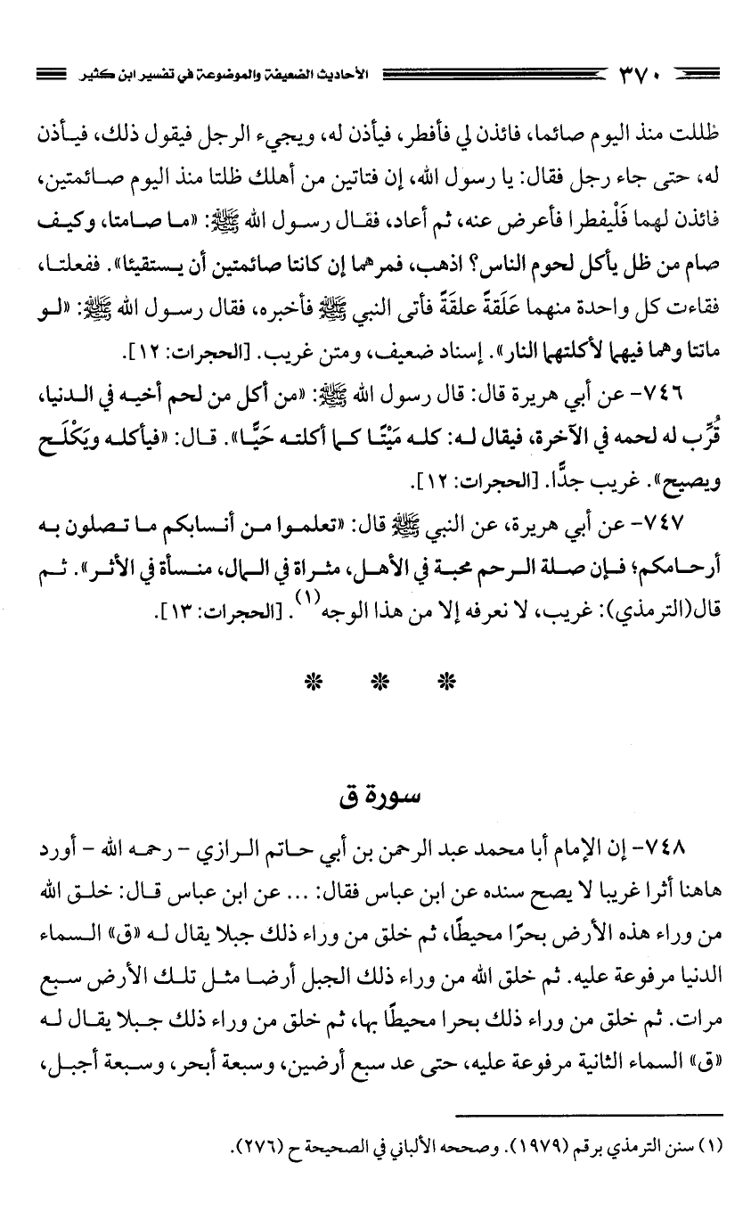 كتاب الأحاديث الضعيفة والموضوعة التي حكم عليها الحافظ ابن كثير في تفسيره