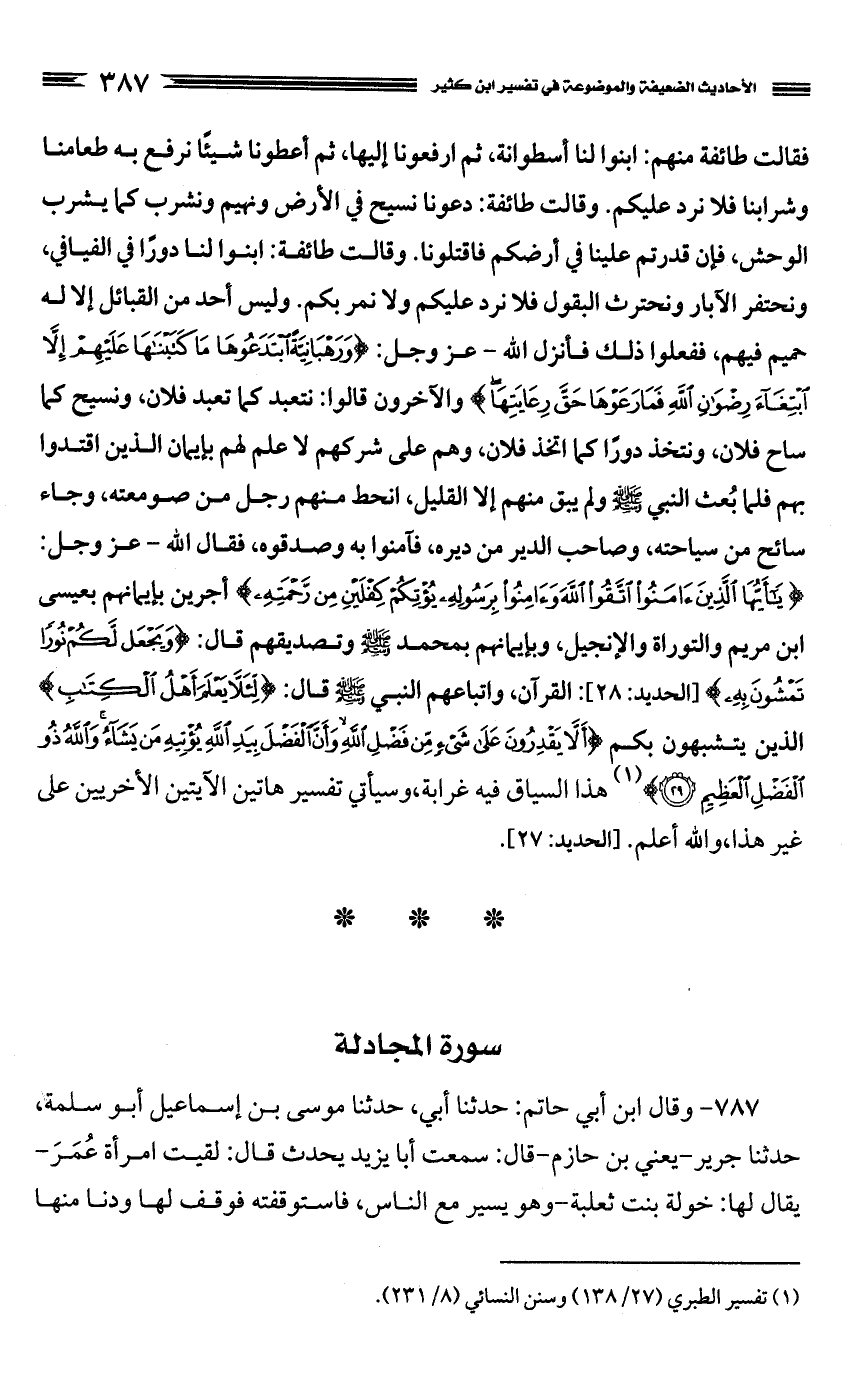 كتاب الأحاديث الضعيفة والموضوعة التي حكم عليها الحافظ ابن كثير في تفسيره