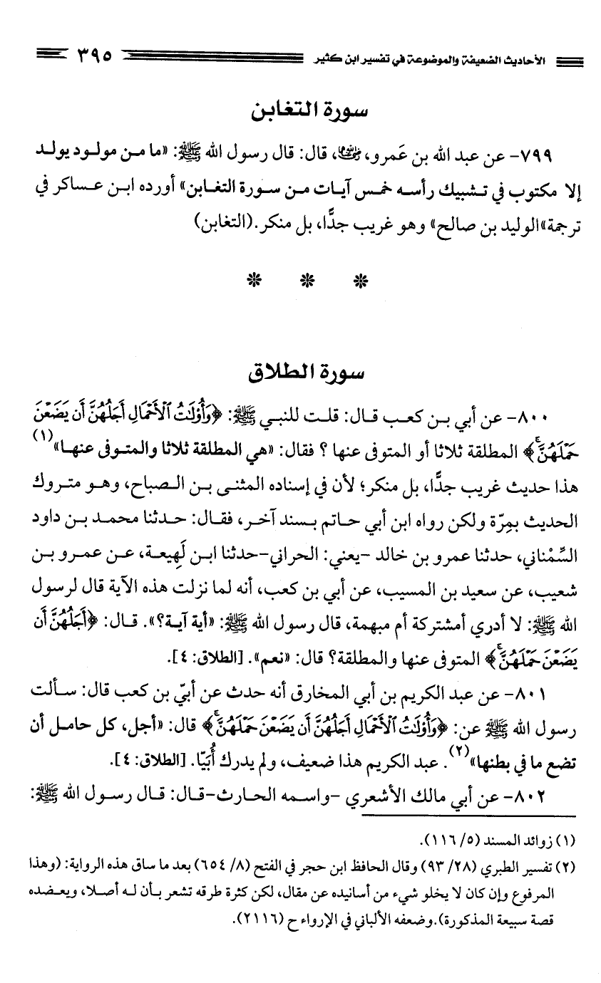 كتاب الأحاديث الضعيفة والموضوعة التي حكم عليها الحافظ ابن كثير في تفسيره