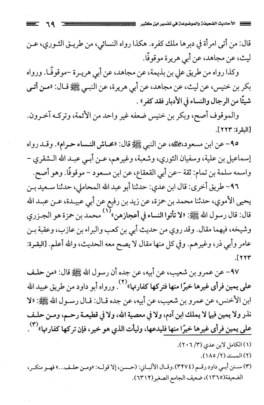 كتاب الأحاديث الضعيفة والموضوعة التي حكم عليها الحافظ ابن كثير في تفسيره