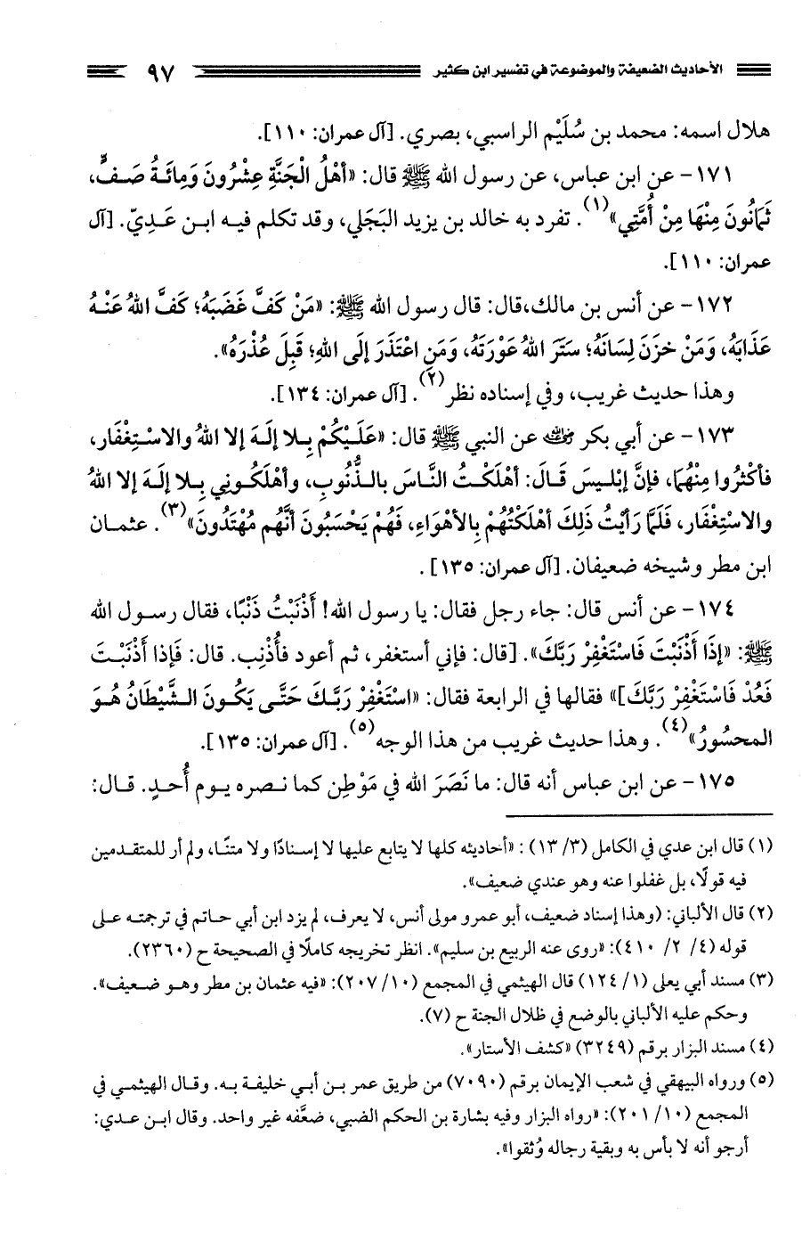 كتاب الأحاديث الضعيفة والموضوعة التي حكم عليها الحافظ ابن كثير في تفسيره