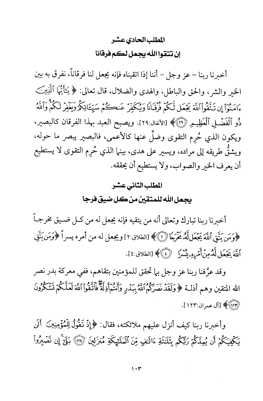 المطلب الحادي عشر إن تتقوا الله يجعل لكم فرقانا