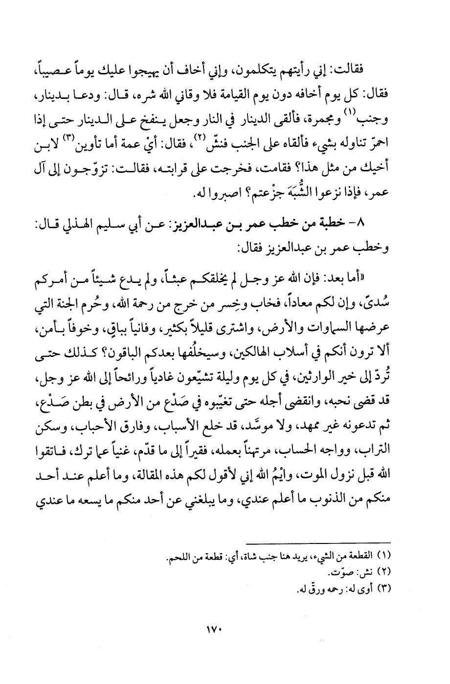 8 - خطبة من خطب عمر بن عبد العزيز: عن أبي سليم الهذلي قال: وخطب عمر بن عبد العزيز فقال: