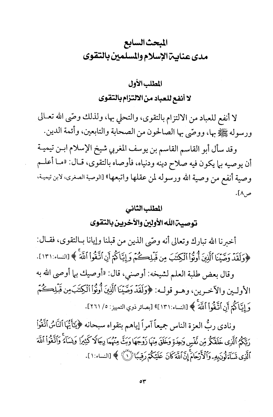 المبحث السابع مدى عناية الإسلام والمسلمين بالتقوى