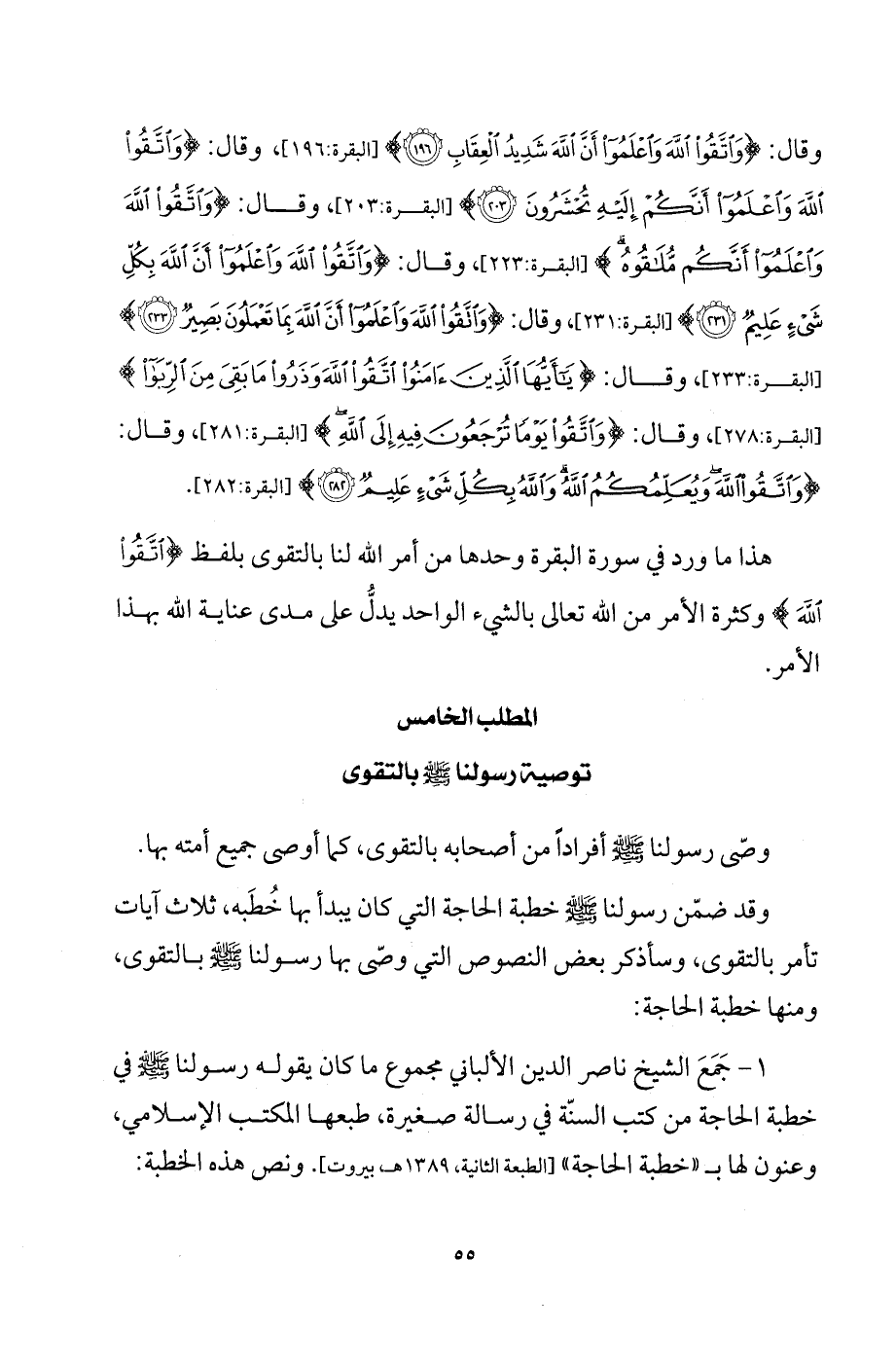 المطلب الخامس توصية رسولنا - صلى الله عليه وسلم - بالتقوى